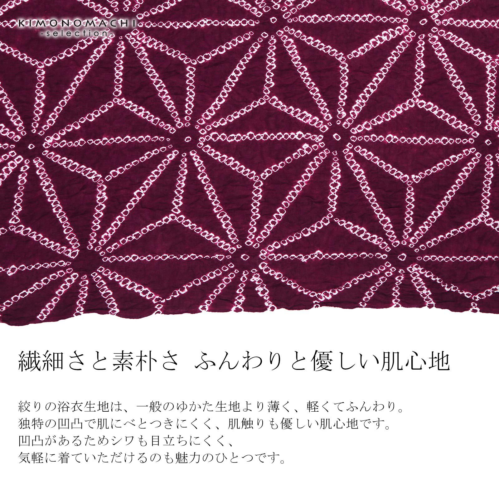 他の画像を見る 送料無料 上品でお洒落な絞り浴衣の反物 絞り浴衣反物「麻の葉 赤紫」女性浴衣 レディース浴衣 絞り浴衣 綿浴衣 未仕立て【メール便不可】 きもの町価格 ¥ 61,710 税込 カートに入れる お気に入りに登録する