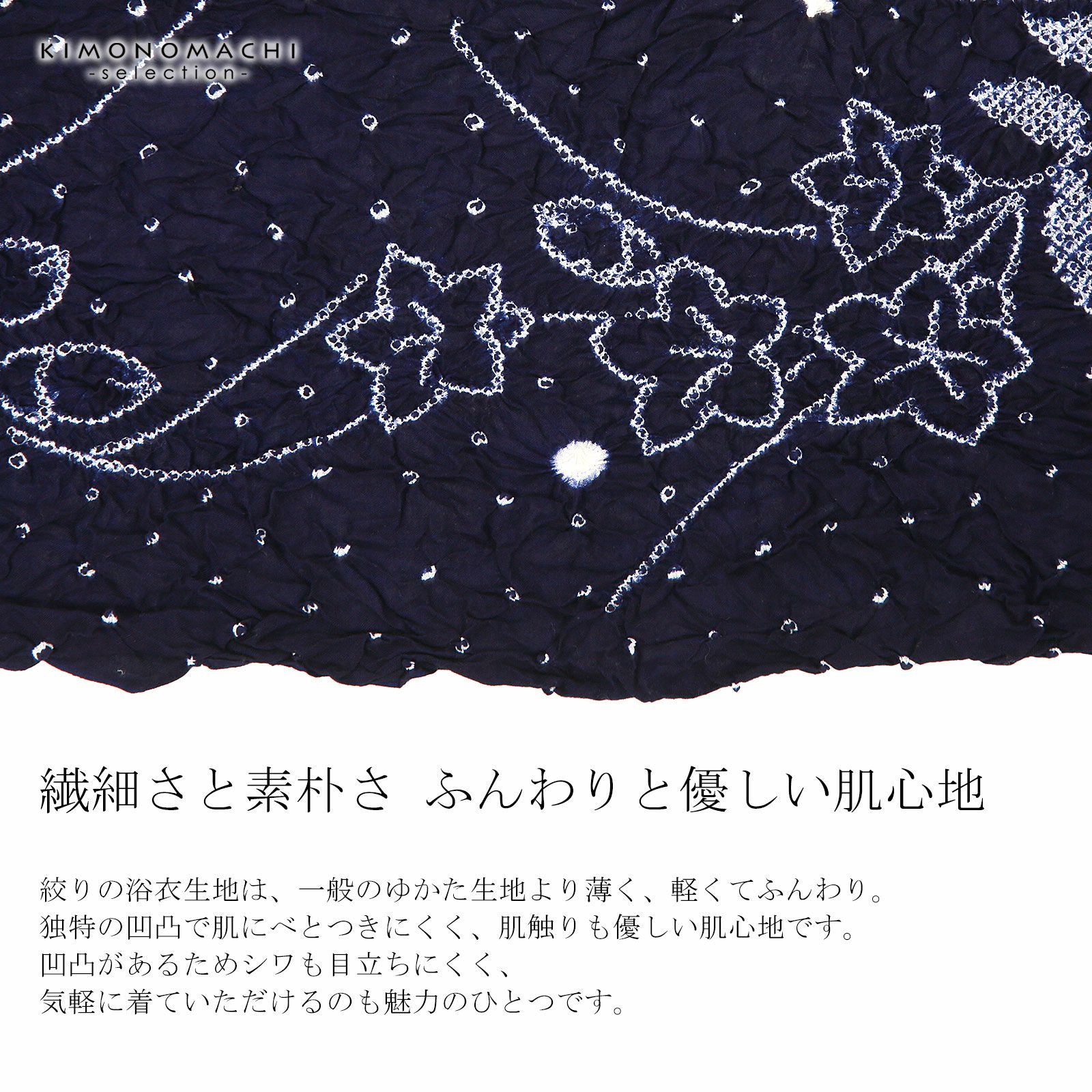 他の画像を見る 送料無料 上品でお洒落な絞り浴衣の反物 絞り浴衣反物 花しぼり「有松三浦 茉莉花 濃紺」有松絞り 女性浴衣 レディース浴衣 絞り浴衣 綿浴衣 未仕立て【メール便不可】 きもの町価格 ¥ 72,600 税込 カートに入れる お気に入りに登録する
