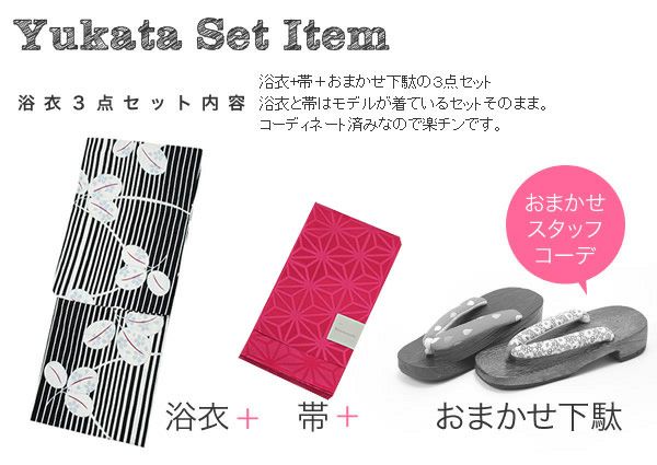 【商品内容】浴衣、浴衣帯、下駄の計3点