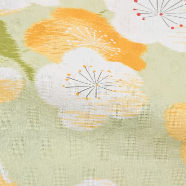 5. ボヌールセゾン浴衣4点セット「グリーン 梅」綿浴衣 三分紐、帯留めの帯飾り付き ボヌールセゾン bonheur saisons 変わり織り 【メール便不可】