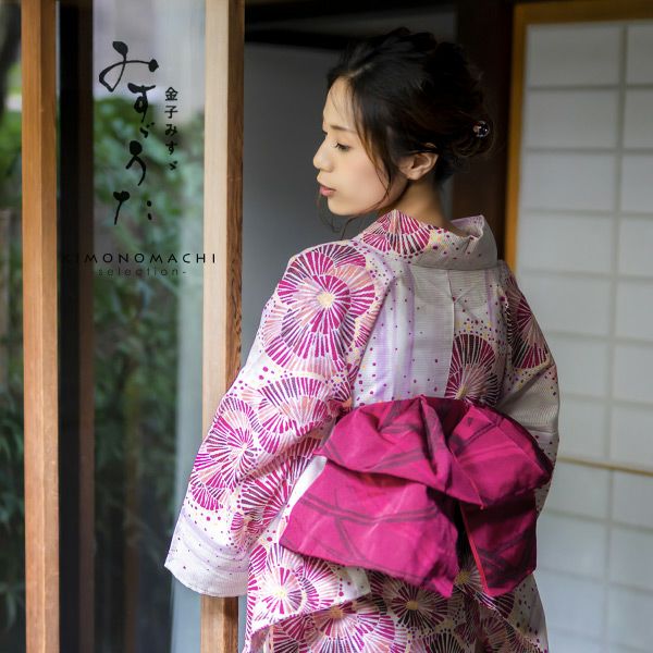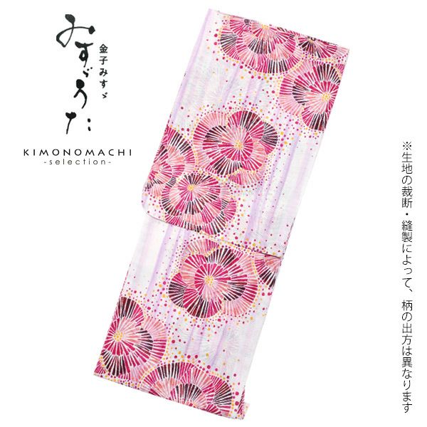 金子みすゞさんの詩の世界を表現したみすゞうたブランド浴衣、浴衣帯、下駄(F、L~LLの2サイズからサイズをお選びいただけます。)の3点セットです。