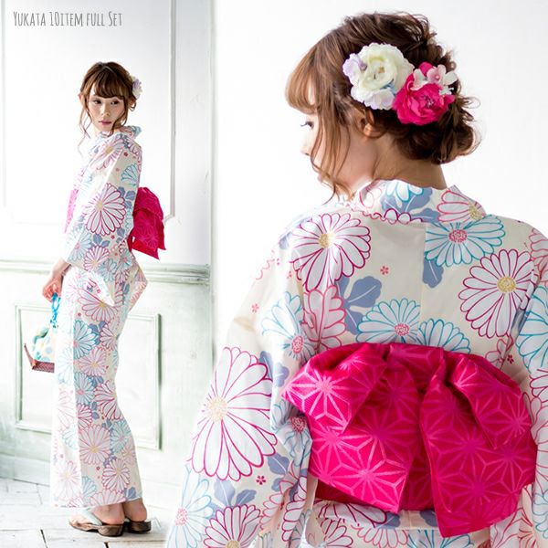 フリーサイズの女性浴衣、浴衣帯、下駄、籠巾着、浴衣着付けセット、浴衣飾りが付いた激安豪華10点セットです!!