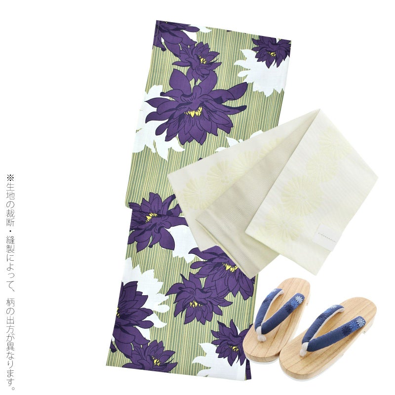 【商品内容】女性用浴衣1点、帯1点、刺繍下駄1点の計3点セット