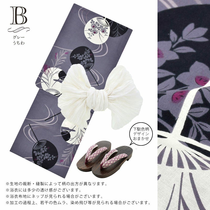 浴衣と帯と下駄のコーデ済3点セット