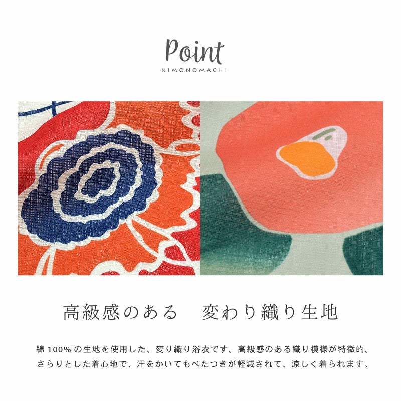 綿100%の生地を使用した、変り織り浴衣です。高級感のある織り模様が特徴的。