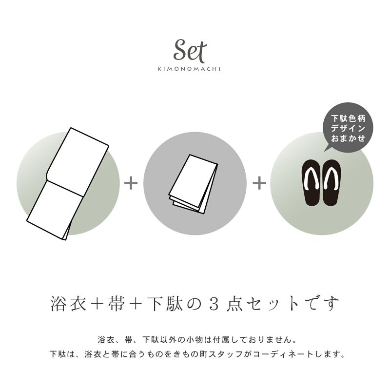 ※下駄は、浴衣と帯に合うものをきもの町スタッフがコーディネート致します。