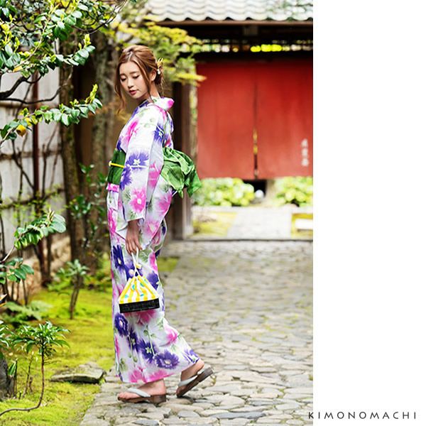 京都きもの町オリジナル浴衣福袋の浴衣、浴衣帯に下駄がついた浴衣3点セットです。