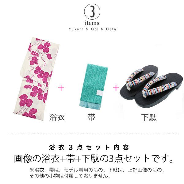 京都きもの町オリジナル浴衣福袋の浴衣、浴衣帯に下駄がついた浴衣3点セットです。◆下駄のサイズはフリーサイズ(約23.5cm前後)です。