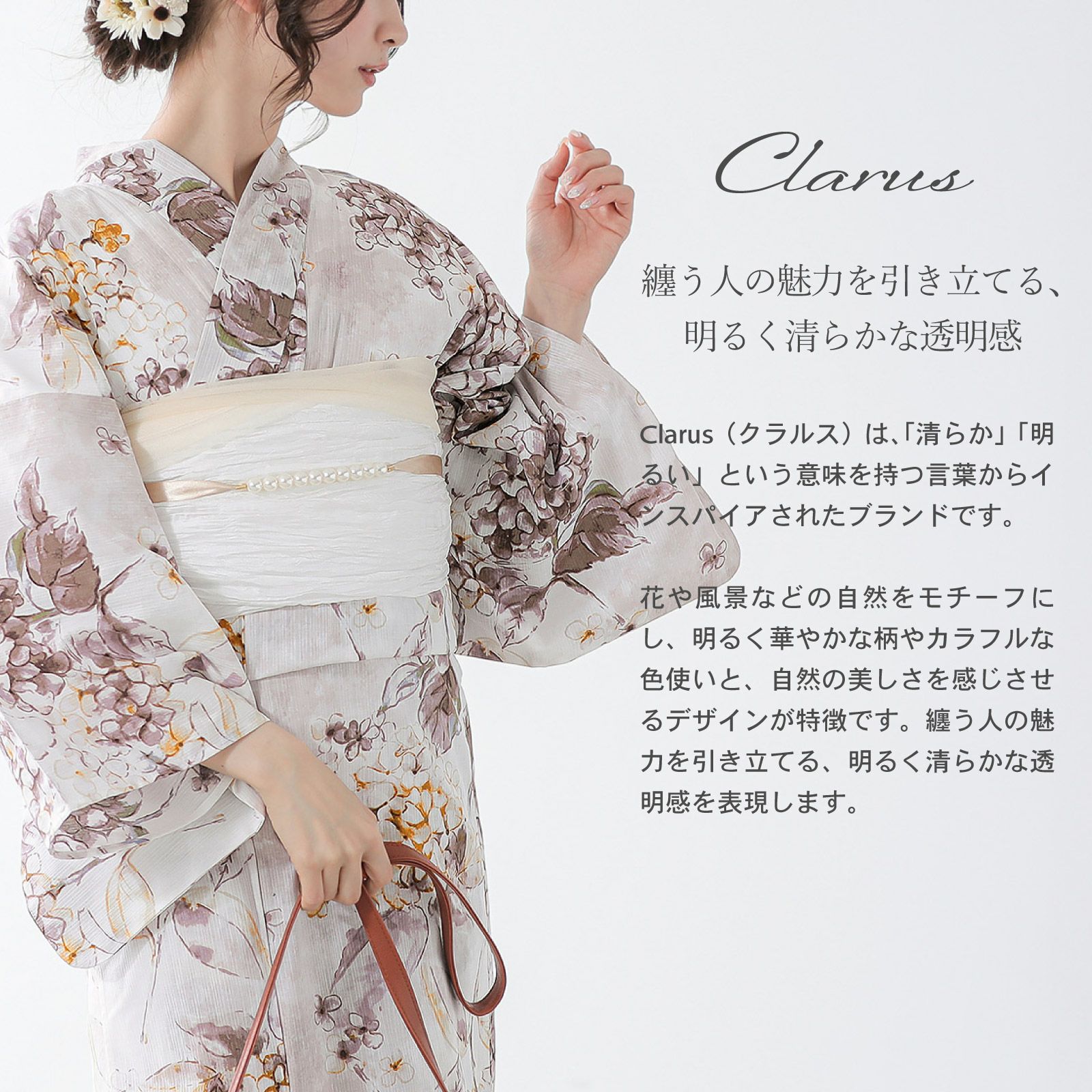 纏う人の魅力を引き立てる、明るく清らかな透明感を表現します。