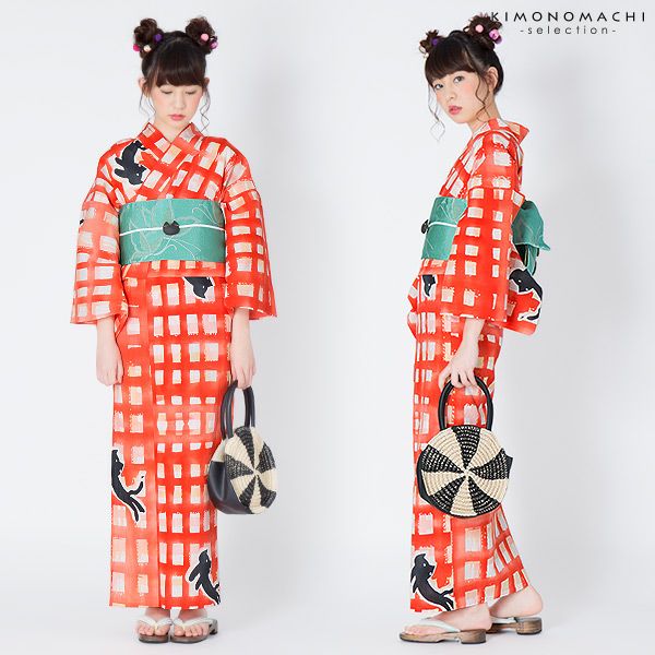 【30%OFF】ツモリチサト浴衣セット「赤格子 猫」tsumori chisato 女性浴衣セット お仕立て上がり浴衣 浴衣2点セット 綿浴衣 【メール便不可】m1906ykl30