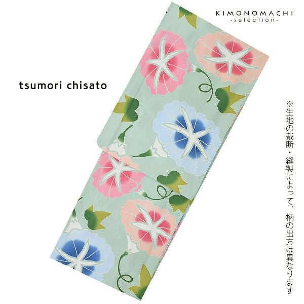 ツモリチサト浴衣セット「グリーン 朝顔」tsumori chisato 女性浴衣セット お仕立て上がり浴衣 浴衣2点セット 綿浴衣