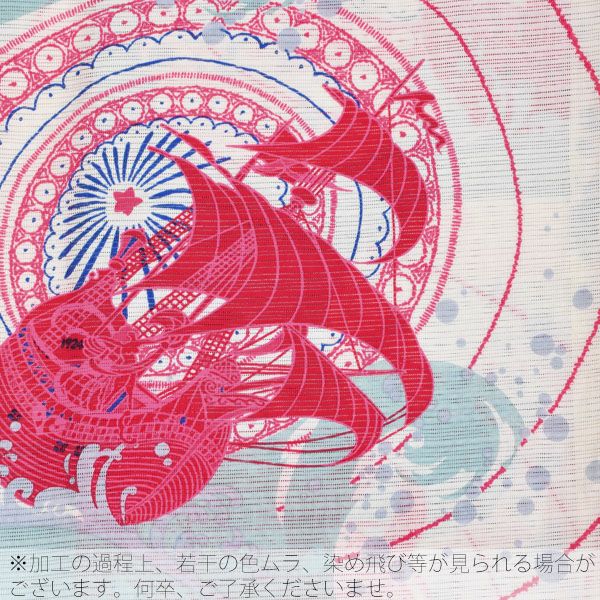 7. 岡重浴衣4点セット「オフホワイト 帆船」綿段絽 三分紐、帯留めの帯飾り付き 綿浴衣 お仕立て上がり浴衣セット 変わり織り 【メール便不可】