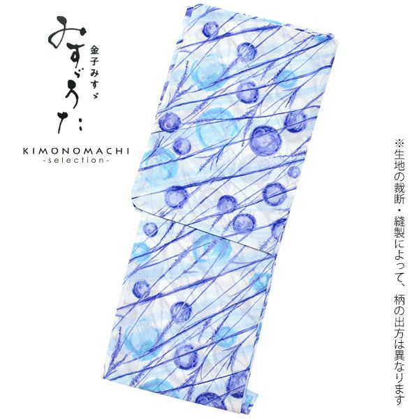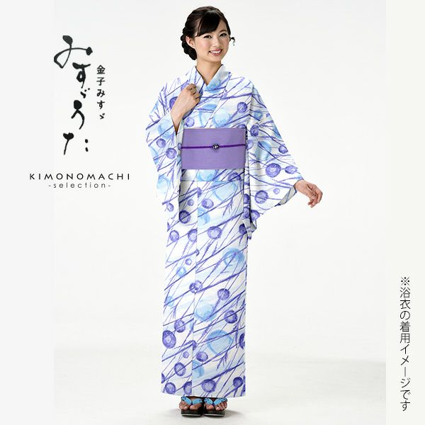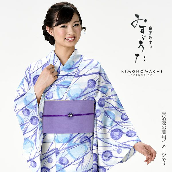 金子みすゞさんの詩の世界を表現したみすゞうたブランド浴衣、浴衣帯、下駄(F、L~LLの2サイズからサイズをお選びいただけます。)の3点セットです。