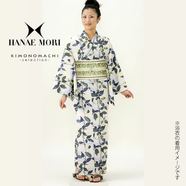 HANAE MORI(ハナエモリ)のブランド浴衣、浴衣帯、下駄(F、L~LLの2サイズからサイズをお選びいただけます。)の3点セットです。