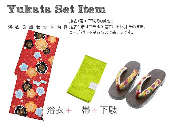 【商品内容】浴衣、浴衣帯、下駄の計3点セット