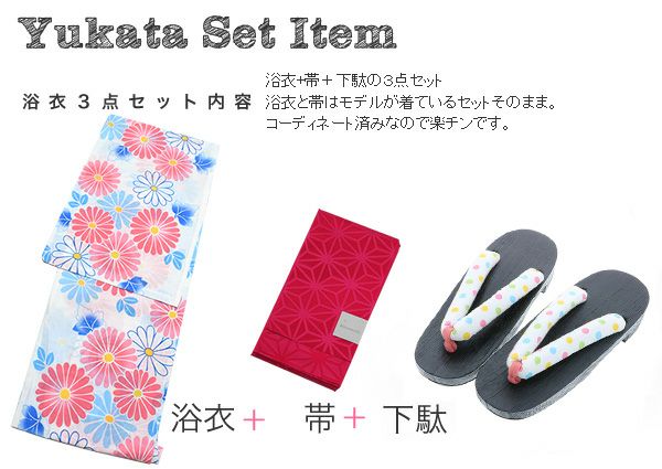 【商品内容】浴衣、浴衣帯、下駄の計3点セット