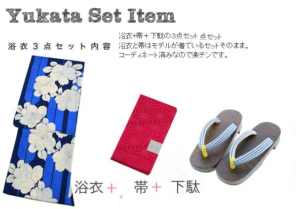 【商品内容】浴衣、浴衣帯、下駄の計3点セット