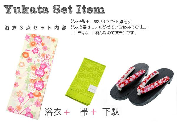 【商品内容】浴衣、浴衣帯、下駄の計3点セット