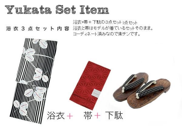 【商品内容】浴衣、浴衣帯、下駄の計3点セット