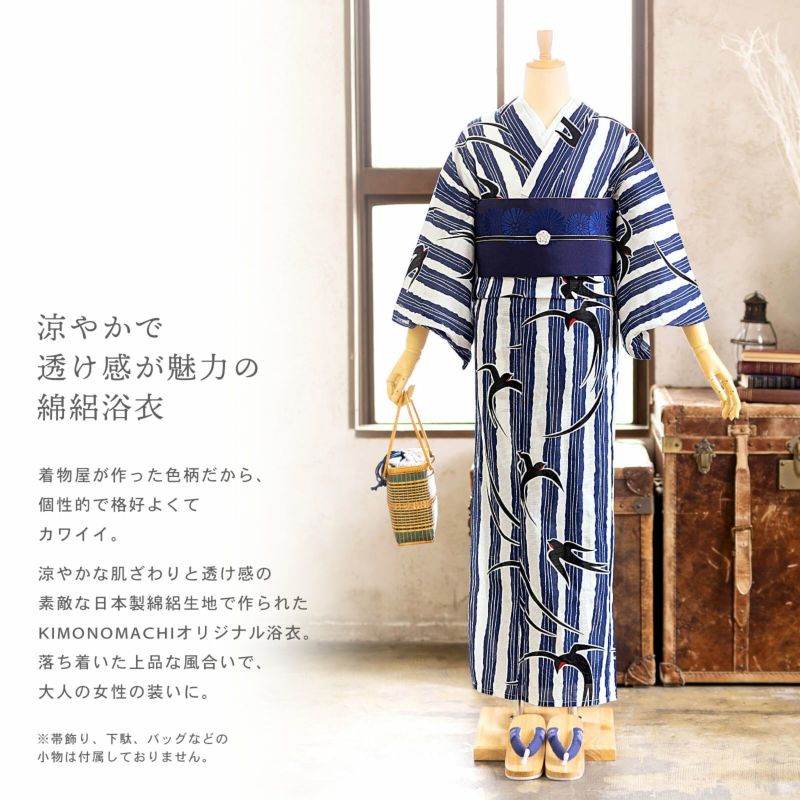 涼やかな肌ざわりと透け感の素敵な日本製綿絽生地で作られたKIMONOMACHIオリジナル浴衣。