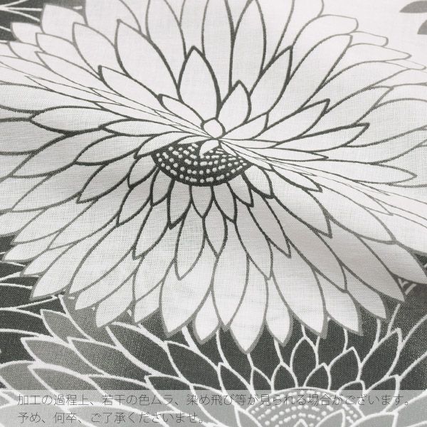 【カラー】ごく薄い生成り地に、黒グレー系の色合いの丸菊模様。