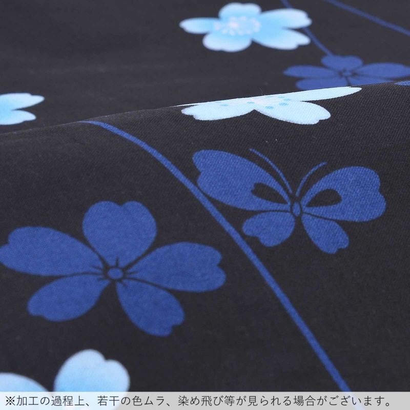 浴衣 レディース 単品 「黒地 白、水色の桜」 フリーサイズ yukata 【メール便不可】