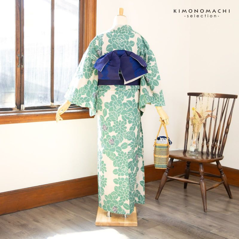 3. 【Prices down2】浴衣 レディース 単品 お仕立て上がり浴衣 プレタ 「生成り色×青磁色 薔薇」 先染め 和布流 Fサイズ シック 大人 モダン 粋 古典 ゆかた 女性 ブランド ブランド浴衣 花火大会 夏祭り 【メール便不可】<H>ss2512ykl15