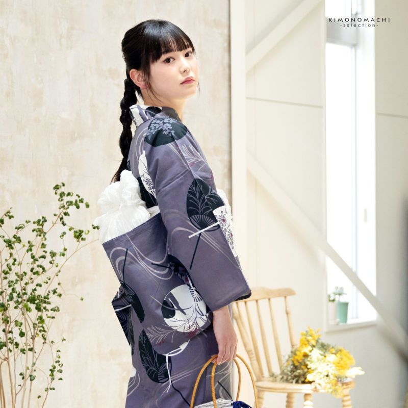 3. 浴衣 レディース 女性浴衣単品「グレー うちわ 3IS-2」綿浴衣 プレタ浴衣 お仕立て上がり浴衣 大人浴衣 Fサイズ 女性用 女性浴衣 ゆかた【メール便不可】
