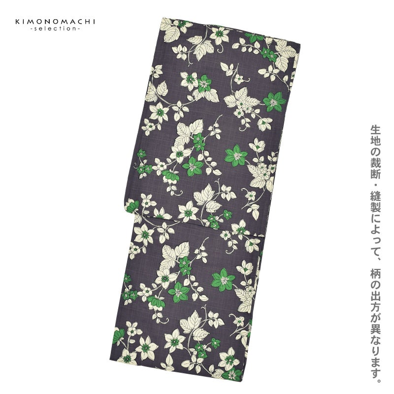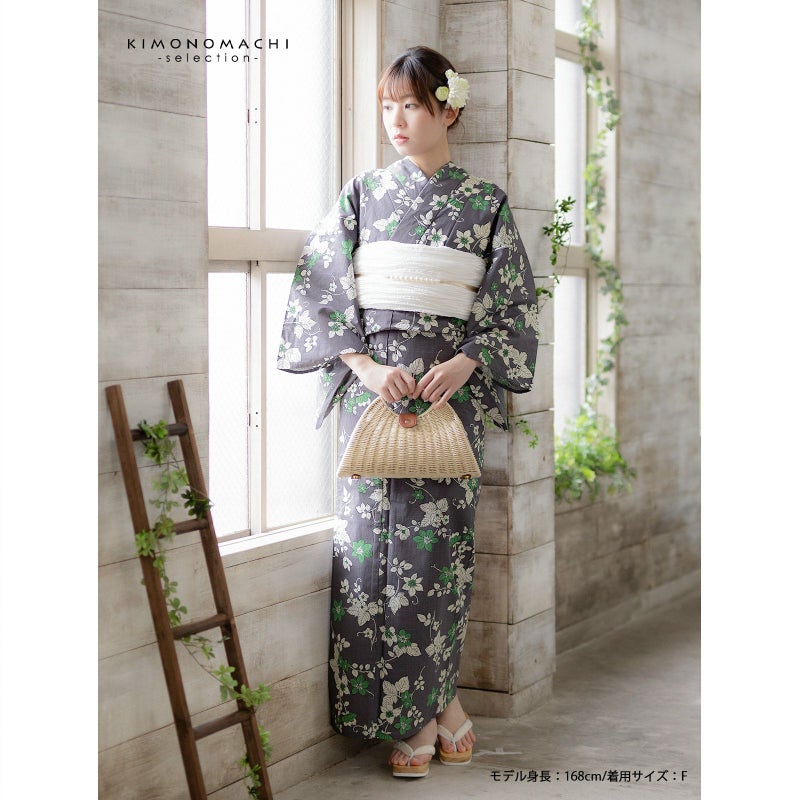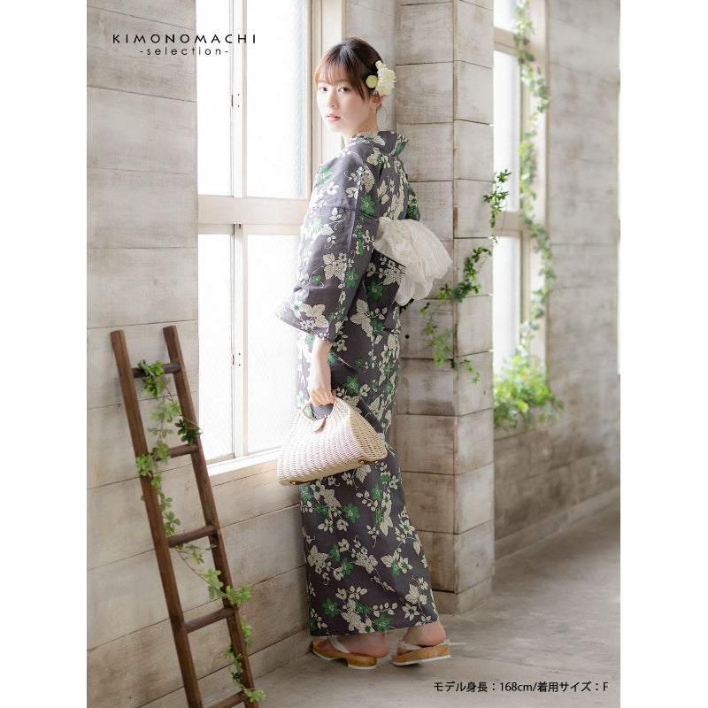 浴衣 レディース 女性浴衣単品 「濃グレー 小花」Fサイズ 綿浴衣