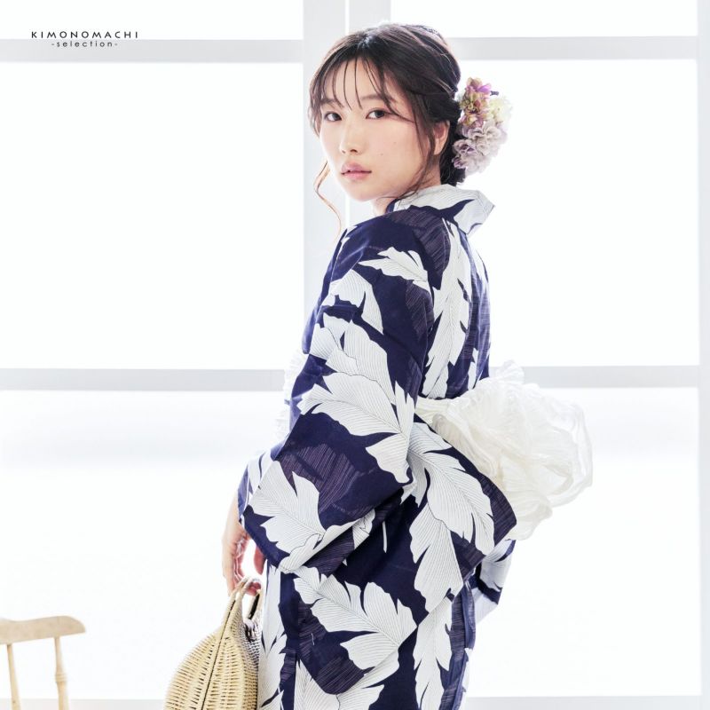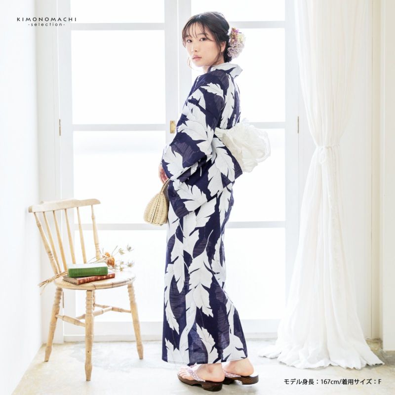 5. 浴衣 レディース 女性浴衣単品 「オーガスタリーフ ネイビー」綿浴衣 プレタ浴衣 お仕立て上がり浴衣 大人浴衣 Fサイズ 女性用 女性浴衣 ゆかた【メール便不可】