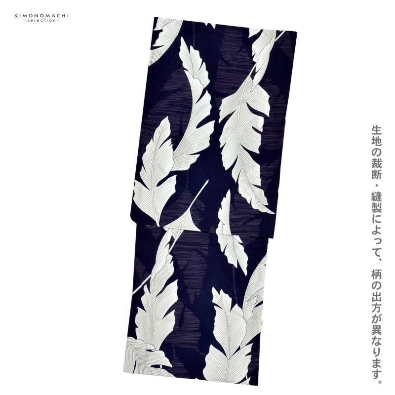 お祭り、花火大会、盆踊りに 女性浴衣 浴衣 レディース 女性浴衣単品 「オーガスタリーフ ネイビー」綿浴衣 プレタ浴衣 お仕立て上がり浴衣 大人浴衣 Fサイズ 女性用 女性浴衣 ゆかた【メール便不可】