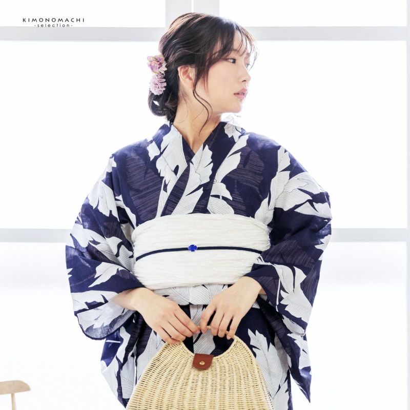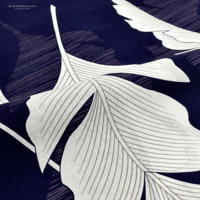 浴衣 レディース 女性浴衣単品 「オーガスタリーフ ネイビー」Fサイズ