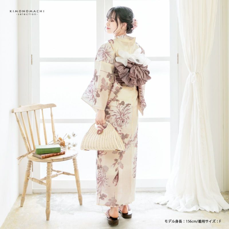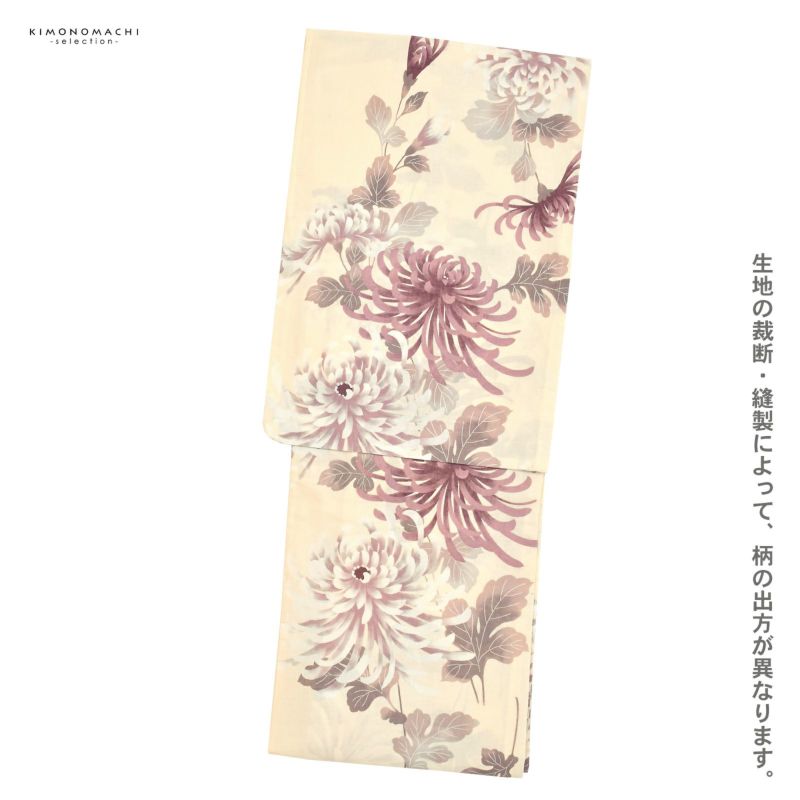 5. 浴衣 レディース 女性浴衣単品 「クリーム くすみ菊」綿浴衣 プレタ浴衣 お仕立て上がり浴衣 大人浴衣 Fサイズ 女性用 女性浴衣 ゆかた【メール便不可】