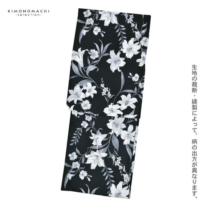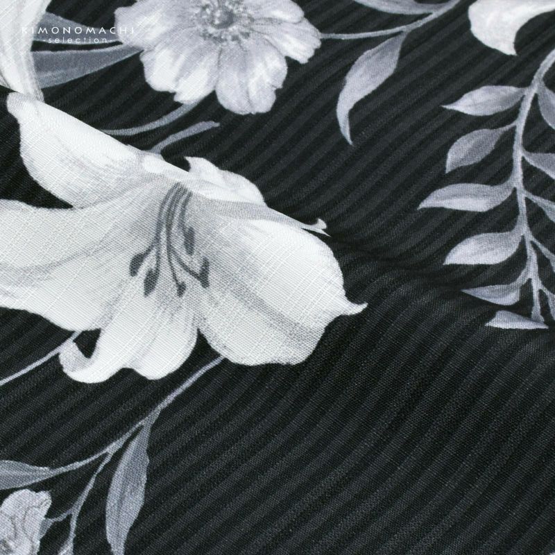 5. 浴衣 レディース 女性浴衣単品「ユリ ブラックストライプ」ポリエステル浴衣 プレタ浴衣 お仕立て上がり浴衣 大人浴衣 Fサイズ 女性用 女性浴衣 ゆかた【メール便不可】