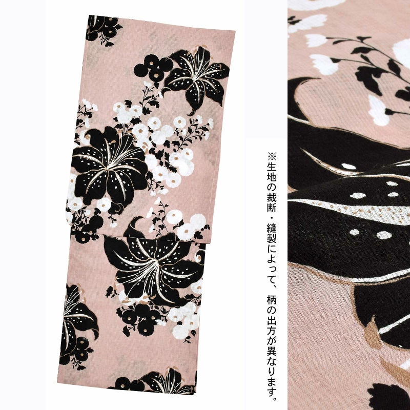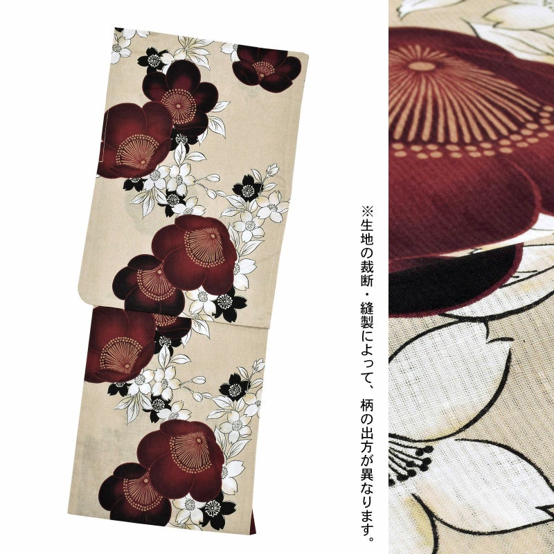 5. 浴衣 レディース 女性浴衣単品「九重×中村里砂:百合に小菊・抱え咲き梅・牡丹・抱え咲き梅」Fサイズ 綿麻浴衣 プレタ浴衣 お仕立て上がり浴衣 ブランド浴衣 大人浴衣 女性用 女性浴衣 ゆかた【メール便不可】