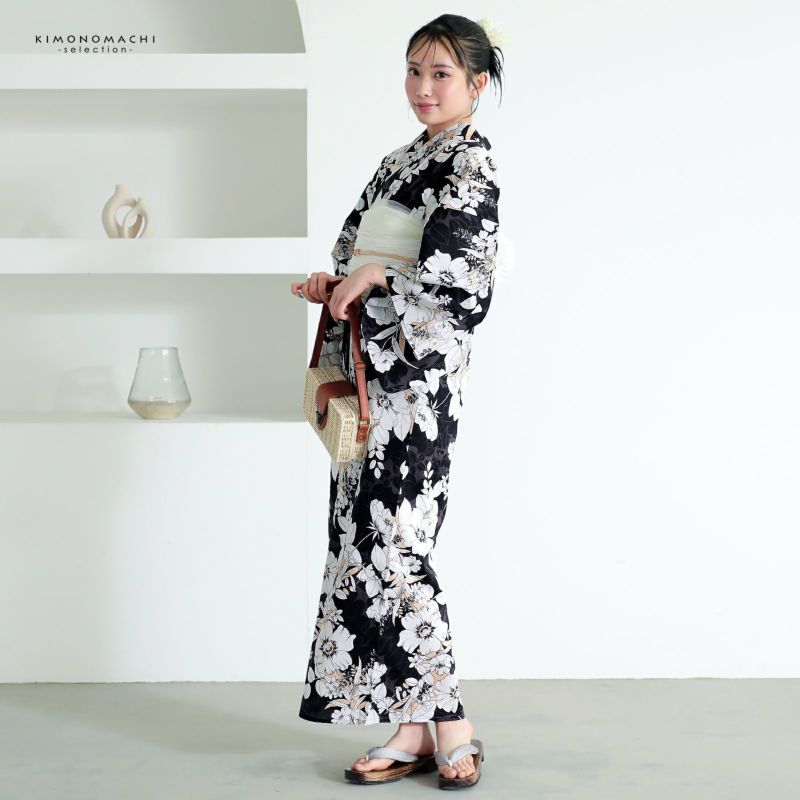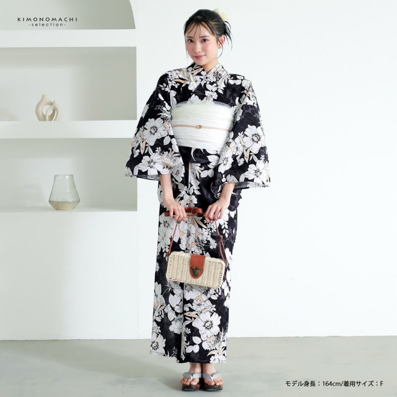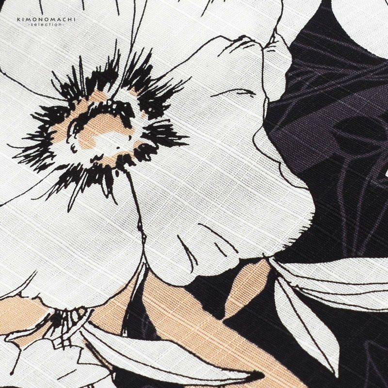 浴衣 レディース 女性浴衣 単品「シンプルライフ:ブラック×サーモン アネモネブーケ」Fサイズ 綿浴衣 プレタ浴衣 お仕立て上がり浴衣 ブランド浴衣 大人浴衣 女性用 女性浴衣 ゆかた【メール便不可】
