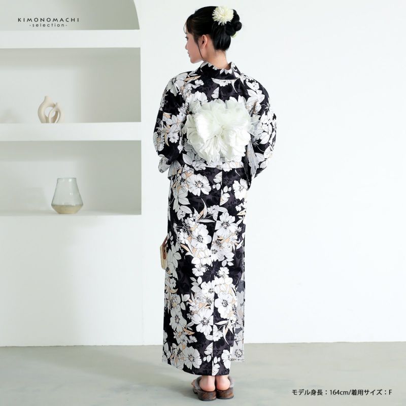 5. 浴衣 レディース 女性浴衣 単品「シンプルライフ:ブラック×サーモン アネモネブーケ」Fサイズ 綿浴衣 プレタ浴衣 お仕立て上がり浴衣 ブランド浴衣 大人浴衣 女性用 女性浴衣 ゆかた【メール便不可】