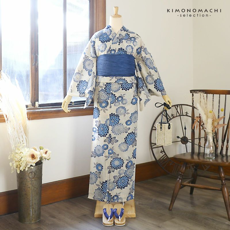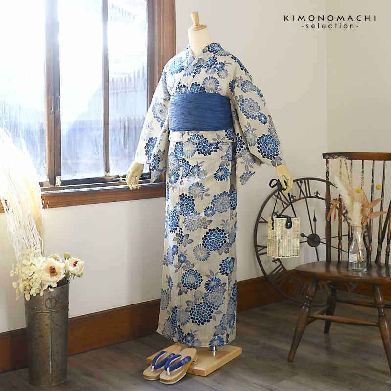 お祭り、花火大会、盆踊りに!涼し気な変わり織り浴衣単品 大人かわいいフリーサイズ 浴衣 レディース 女性浴衣 単品「花子倶楽部:紺青 菊」Fサイズ 綿麻浴衣 プレタ浴衣 お仕立て上がり浴衣 ブランド浴衣 大人浴衣 女性用 女性浴衣 ゆかた【メール便不可】
