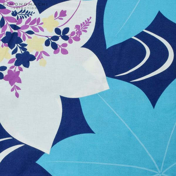 【Prices down2】女性 浴衣単品「紺×水色 流水に楓」綿浴衣 プレタ浴衣 お仕立て上がり浴衣 花火大会、夏デートに 7FS-H2-27【メール便不可】ss2506ykl10