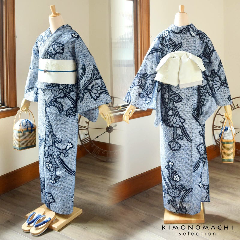 藤娘きぬたやの絞りの大人のお洒落な浴衣反物です。お仕立て上がりなので、すぐにご着用いただけます。絞りがやわらかで肌触りがよく、生地の凹凸があることで、肌にはり付きにくく、さわやかな着心地です。盆踊り、夏祭りにはもちろん、襦袢を合わせてちょっとしたお出かけにも、踊りなどのお稽古にもいいですね。
