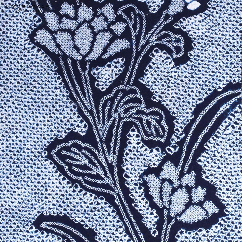 【カラー】黒っぽい紺色の色合いに、花模様。縦のラインに配した模様で、すっきりと。シックな色合いの綺麗な雰囲気。