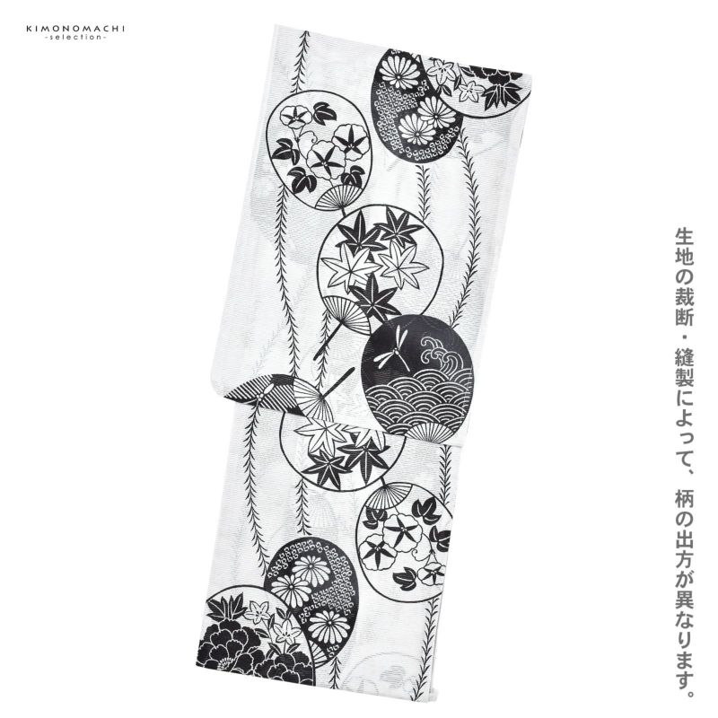 涼やかで上質な綿絽浴衣 浴衣 レディース 単品 お仕立て上がり浴衣 綿絽浴衣「うちわ 白地、墨黒」えんむすび Fサイズ シック 大人 モダン 粋 古典 ゆかた 女性 ブランド ブランド浴衣 花火大会 夏祭り 綿 絽 夏着物にも【メール便不可】