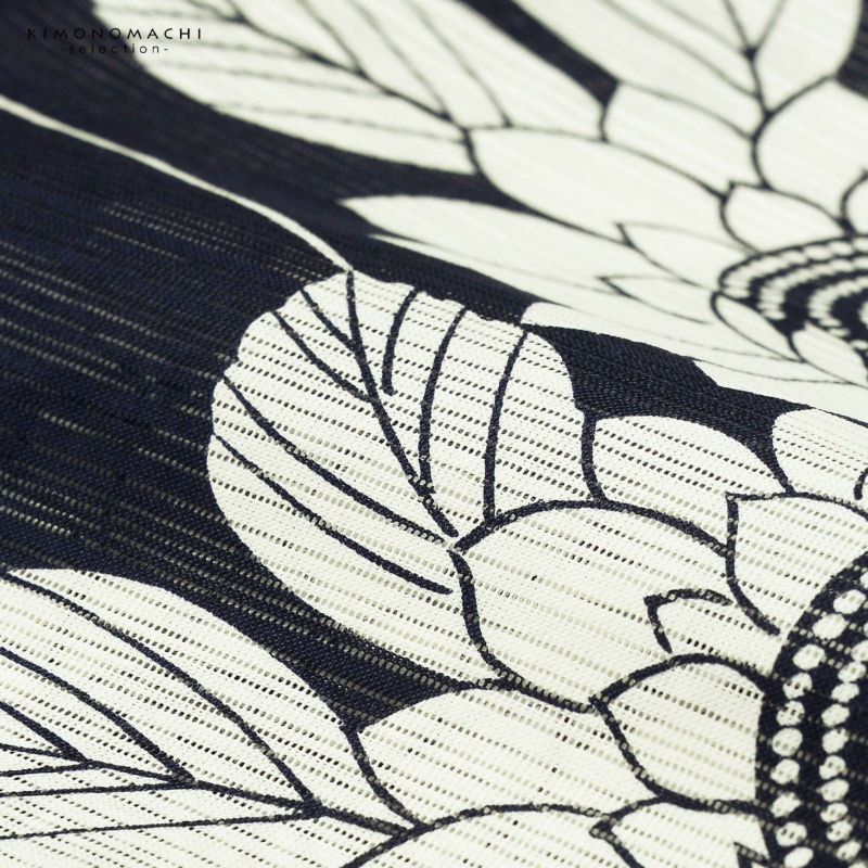【色柄】濃紺の地に白の丸みのあるヒマワリの花、芝草。