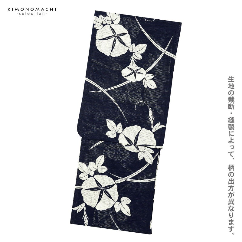 【色柄】濃紺の地に白の朝顔の花、芝草。
