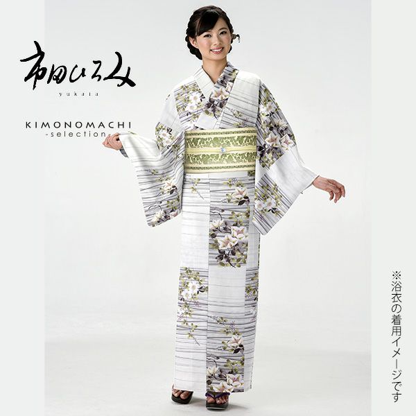 【Prices down2】市田ひろみ浴衣単品「グレー 横段に鉄線、萩」ブランド浴衣単品 女性浴衣単品 大人ブランド 大人浴衣単品 浴衣単品 I1804【メール便不可】ss2512ykl35