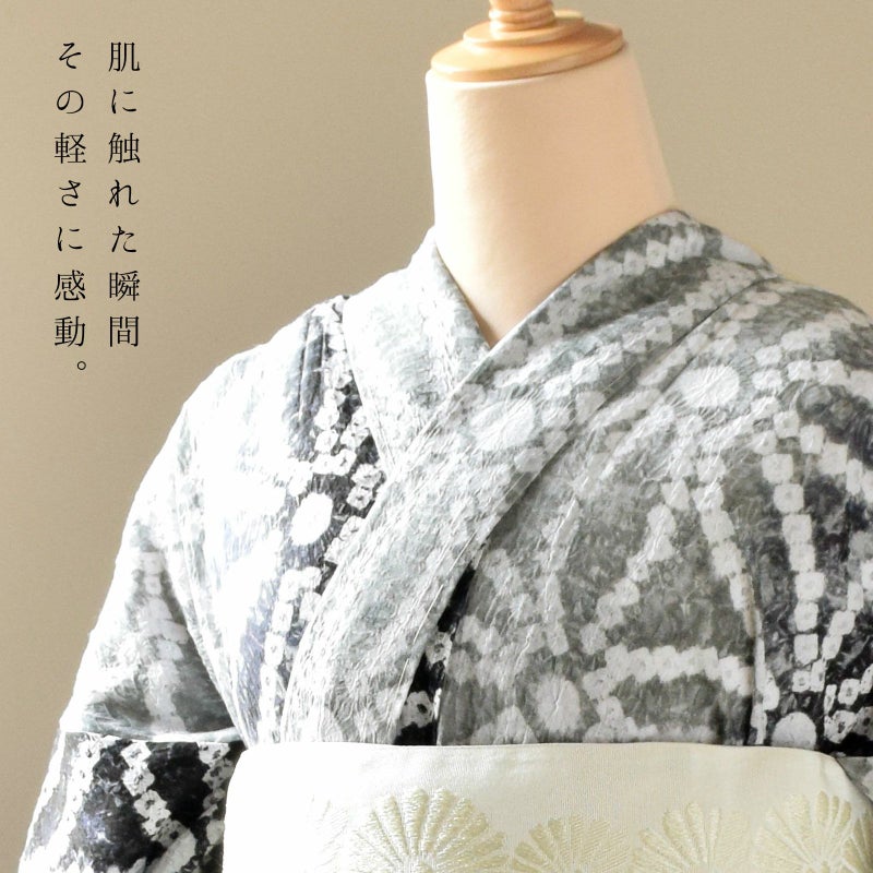 大人のお洒落な絞りの浴衣単品です。お仕立て上がりなので、すぐにご着用いただけます。絞りがやわらかで肌触りがよく、生地の凹凸があることで、肌にはり付きにくく、さわやかな着心地です。盆踊り、夏祭りにはもちろん、襦袢を合わせてちょっとしたお出かけにも、踊りなどのお稽古にもいいですね。