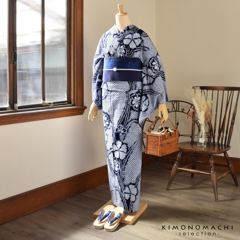 お仕立て上がり絞り浴衣単品「チャーミングなでしこ 紺」有松絞り 女性浴衣単品 レディース浴衣単品 綿 お仕立て上がり浴衣 yukata
