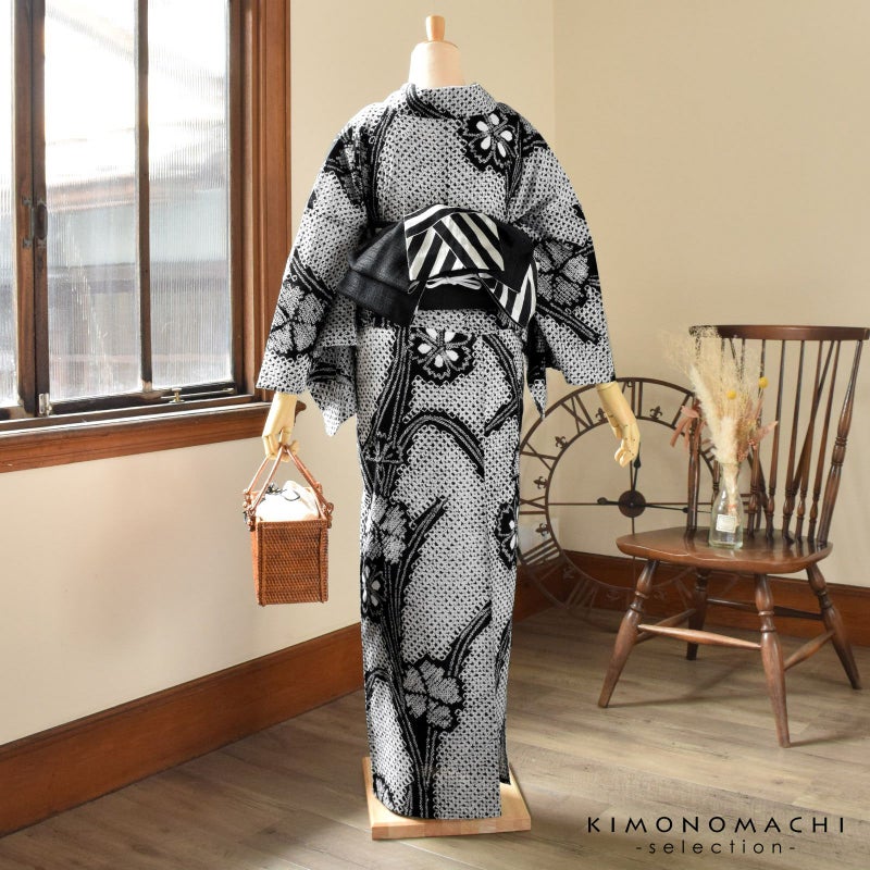 5. お仕立て上がり絞り浴衣単品「チャーミングなでしこ 黒」有松絞り 女性浴衣単品 レディース浴衣単品 綿 お仕立て上がり浴衣 yukata【メール便不可】