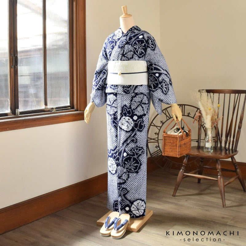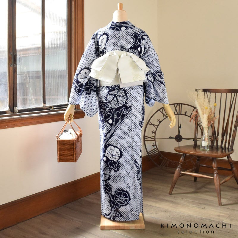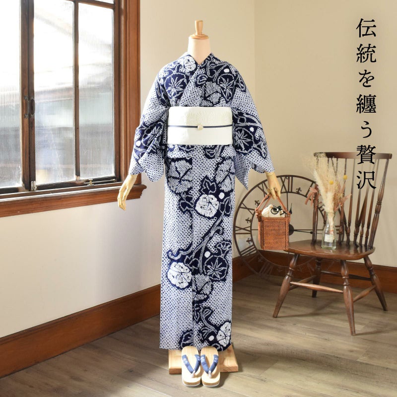 大人のお洒落な絞りの浴衣単品です。お仕立て上がりなので、すぐにご着用いただけます。絞りがやわらかで肌触りがよく、生地の凹凸があることで、肌にはり付きにくく、さわやかな着心地です。盆踊り、夏祭りにはもちろん、襦袢を合わせてちょっとしたお出かけにも、踊りなどのお稽古にもいいですね。