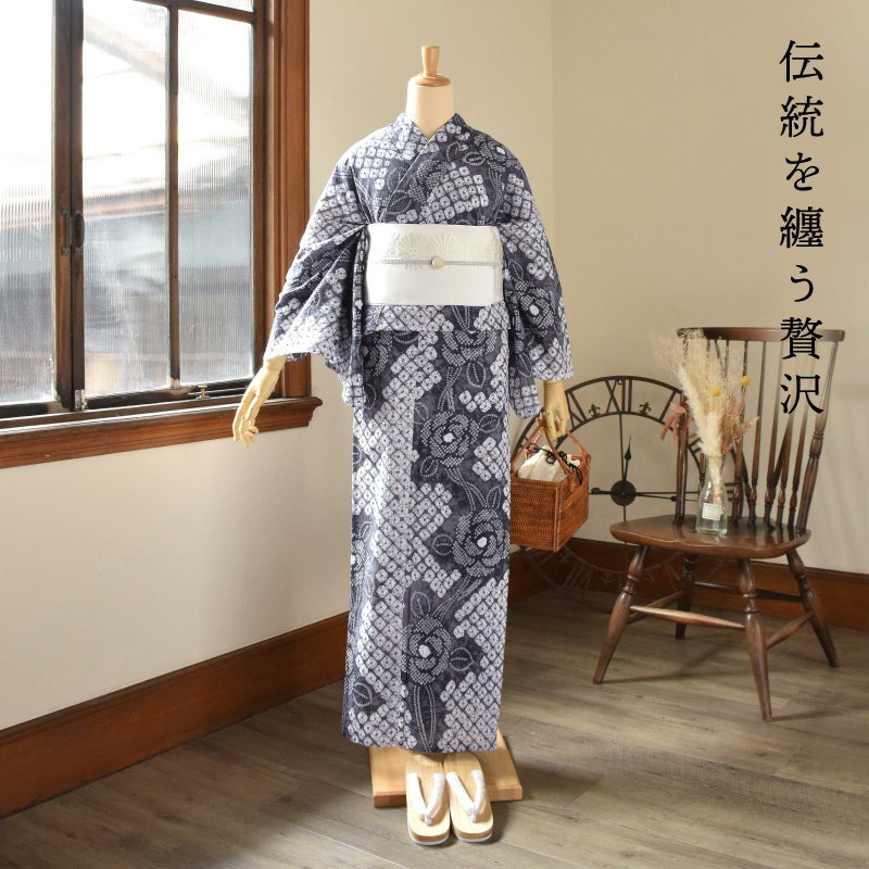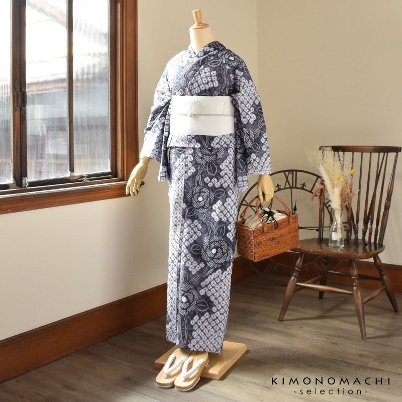 お仕立て上がり絞り浴衣単品「ばら 黒グレー」有松絞り 女性浴衣単品 レディース浴衣単品 綿 お仕立て上がり浴衣 yukata